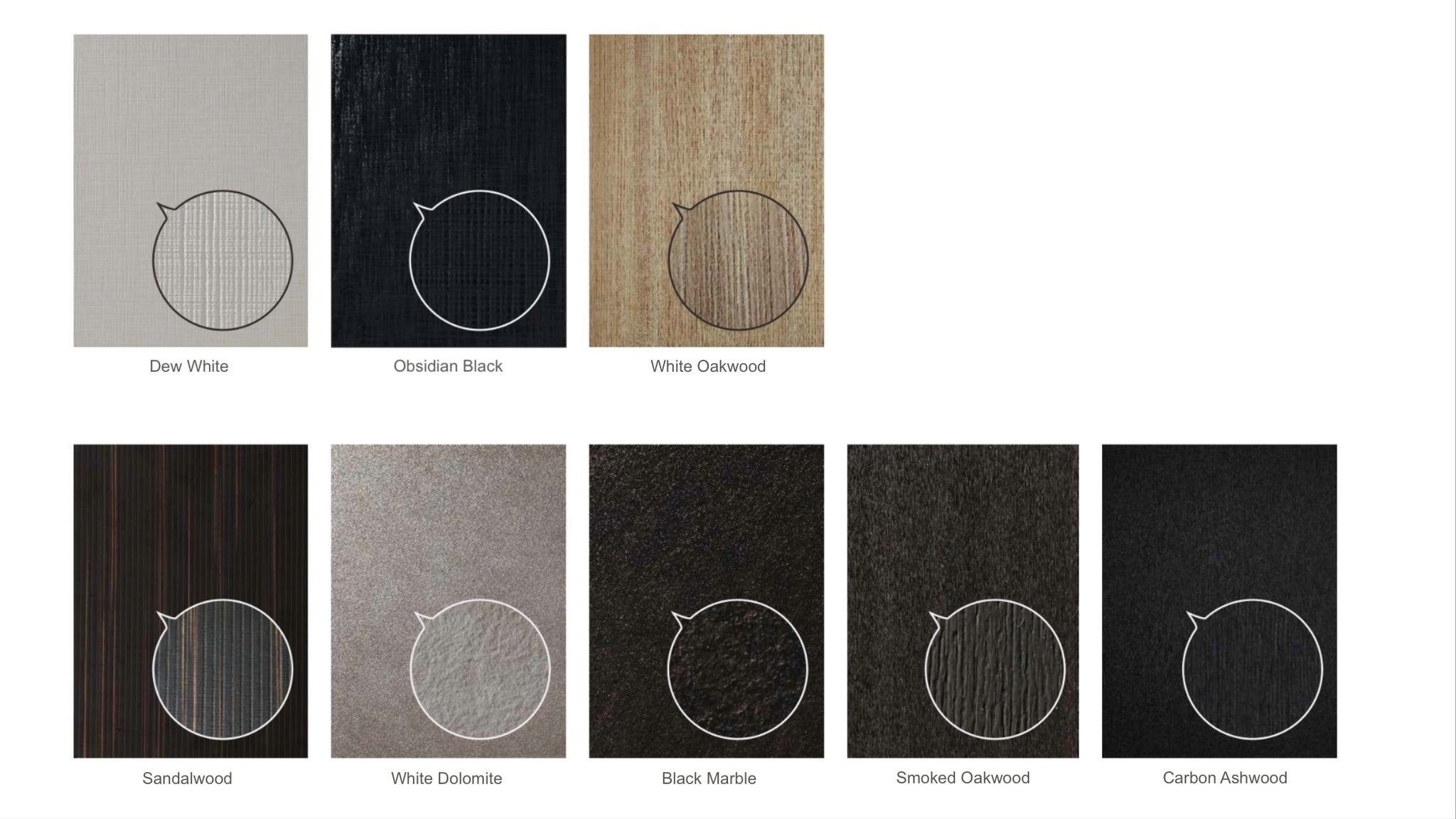 A commonly used material for wardrobes, wood veneer is a thin layer of artificial wood applied to a solid or engineered base, offering the natural beauty and texture of timber with added durability and stability. It provides a premium, authentic wood look that is easy to clean, resistant to high temperature, scratch, discolouration, deformation and edge chipping. Its realistic texture, fingerprint resistant nature, luxurious and simplistic visuals maintains a clean, polished look even with frequent use.