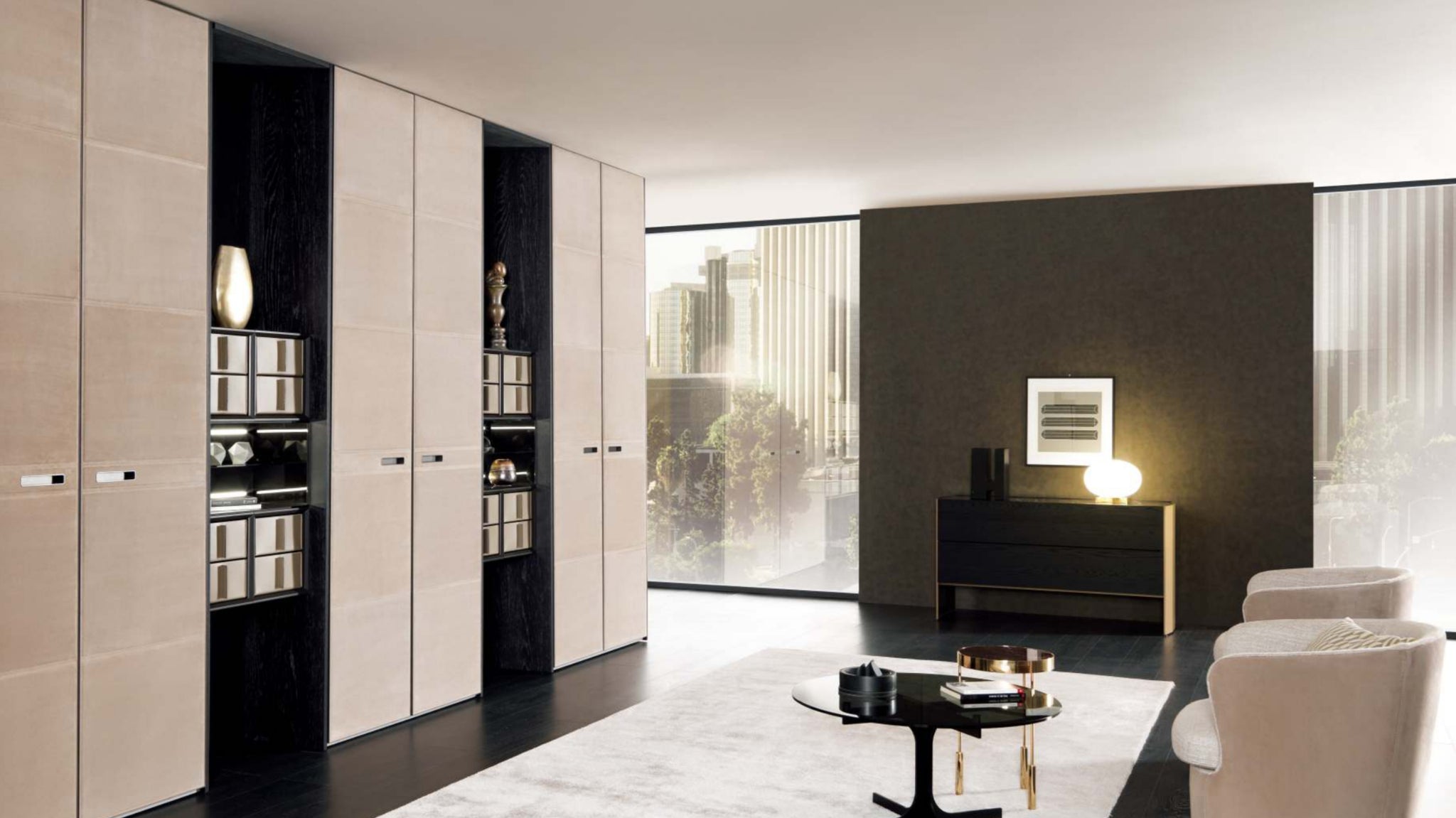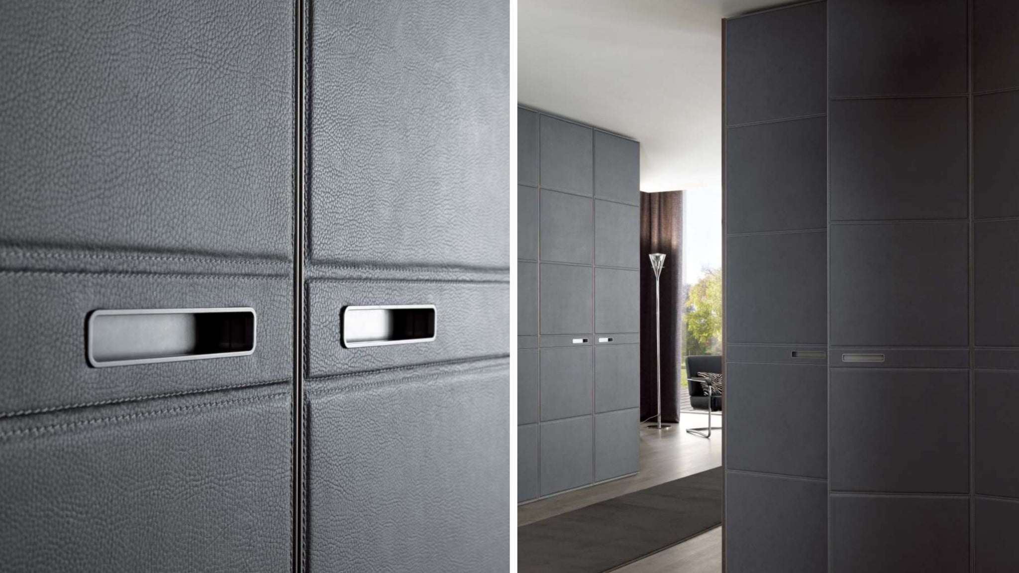 Favoured in stylish, modern wardrobes, leather door features a surface wrapped in high-quality, durable leather, offering a soft, luxurious texture and elegant appearance. Made from high-quality, durable, and eco-friendly materials, they resist wear, stains, and noise, while requiring minimal maintenance. Available in a variety of styles, leather doors add sophistication and elegance to wardrobe designs.